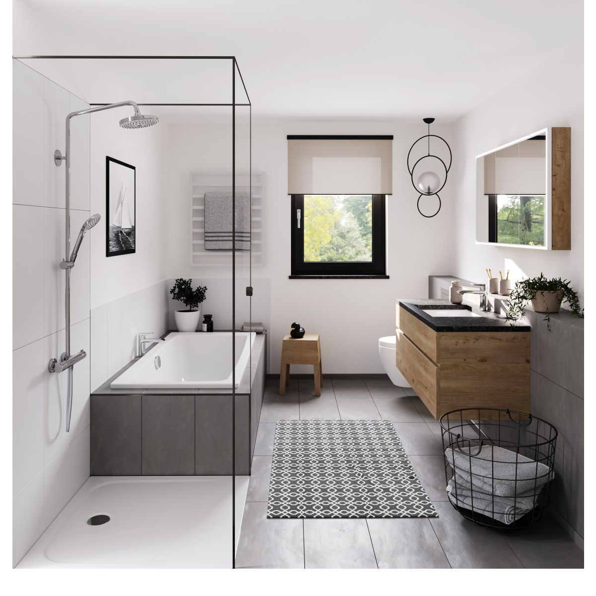Plato de ducha plano de diseño clásico, con desagüe situado en el centro del lado más corto. Superficie de apoyo amplia y homogénea. Perfectamente coordinado con los productos de la familia Cayono.
