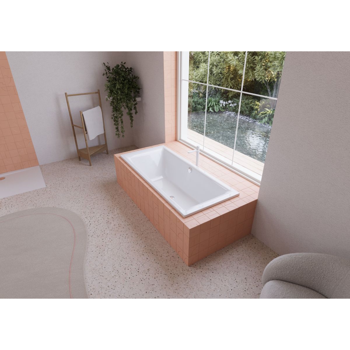PURO DUO se ha diseñado pensando en la comodidad para dos: gracias a su forma simétrica, el desagüe y el mezclador están situados en el centro para garantizar la comodidad a ambos lados de la bañera. La disponibilidad de diferentes tamaños permite que la bañera encaje perfectamente en cualquier diseño de baño, garantizando el máximo confort independientemente del espacio.