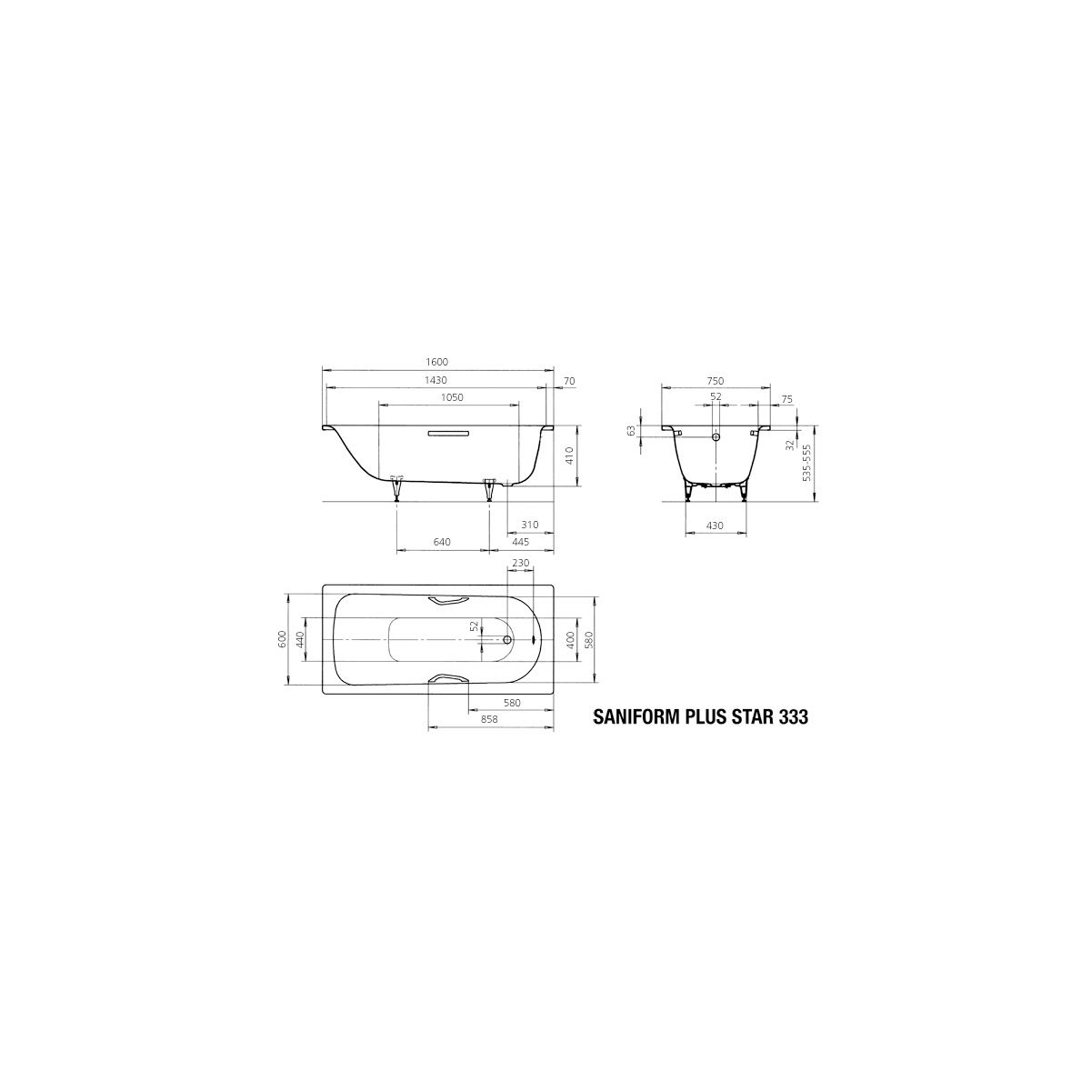 Kaldewei Saniform Plus Star bañera rectangular 160x75 cm blanco 133330003001