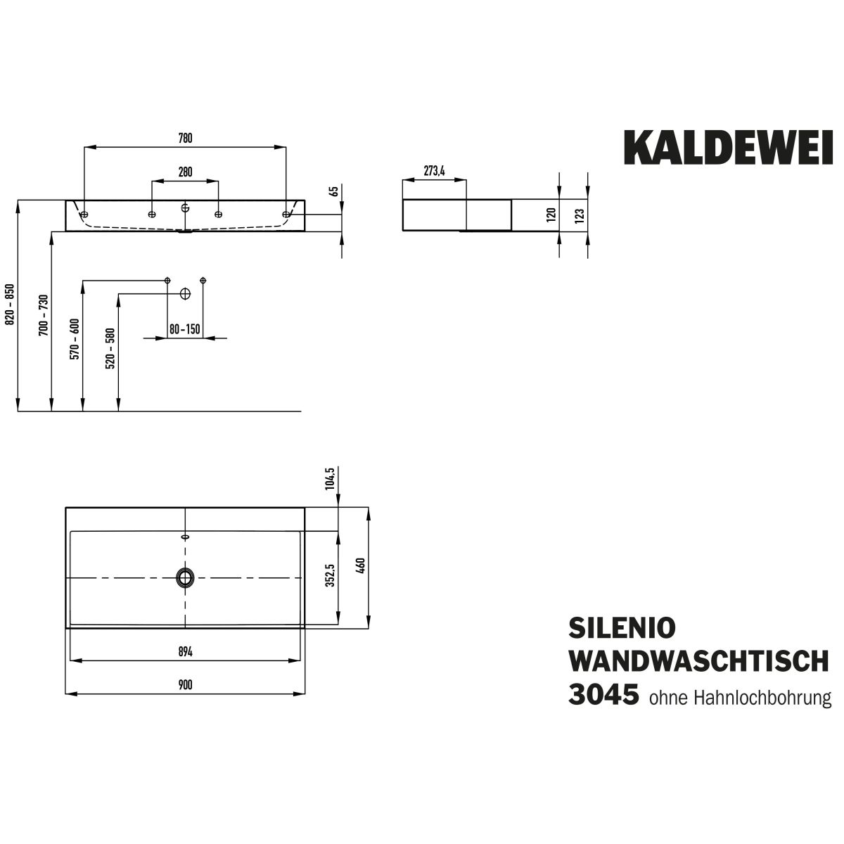 Kaldewei Silenio lavabo 90x46 cm rectangular clásico blanco 904406003001