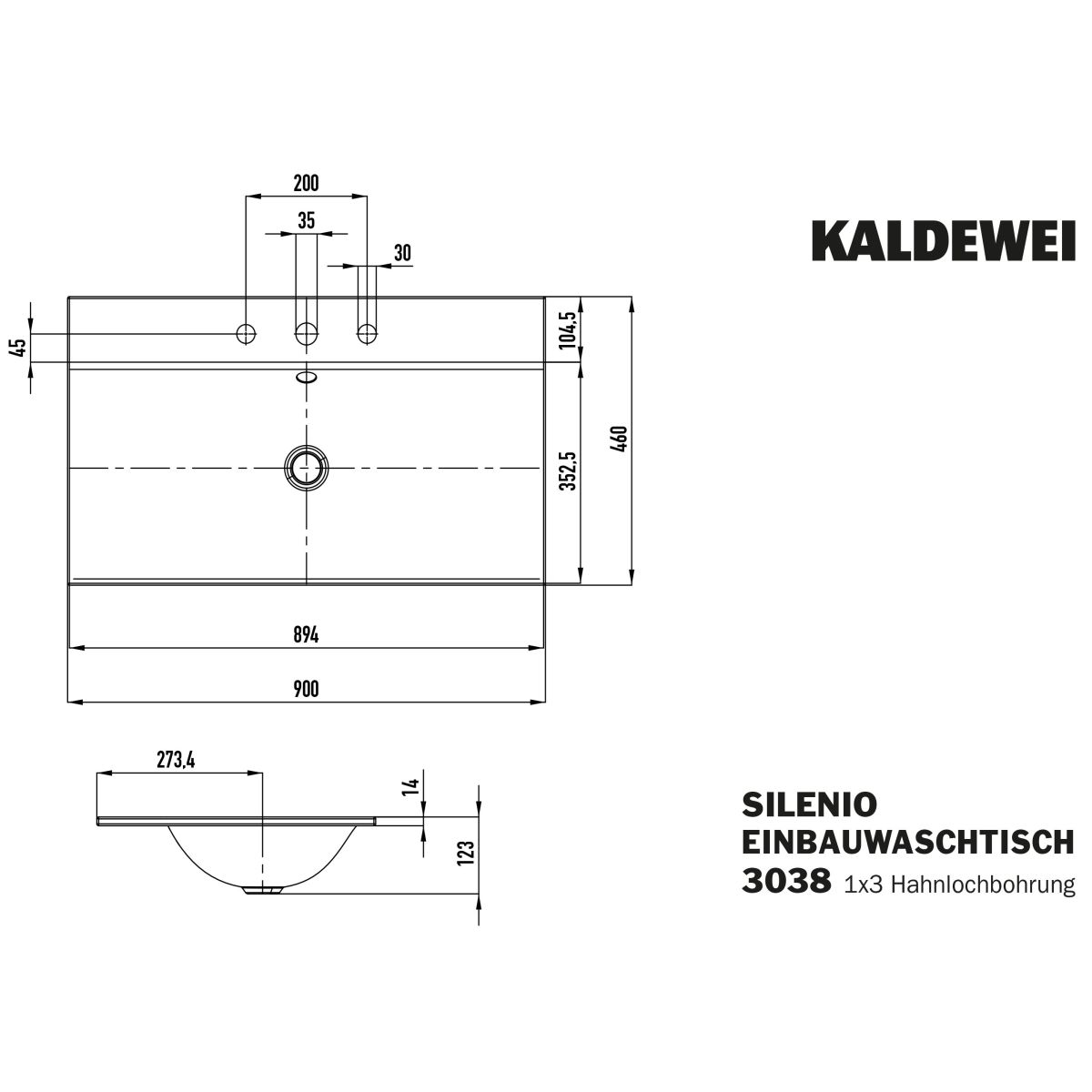 Kaldewei Silenio lavabo 90x46 cm rectangular empotrado blanco 907806033001