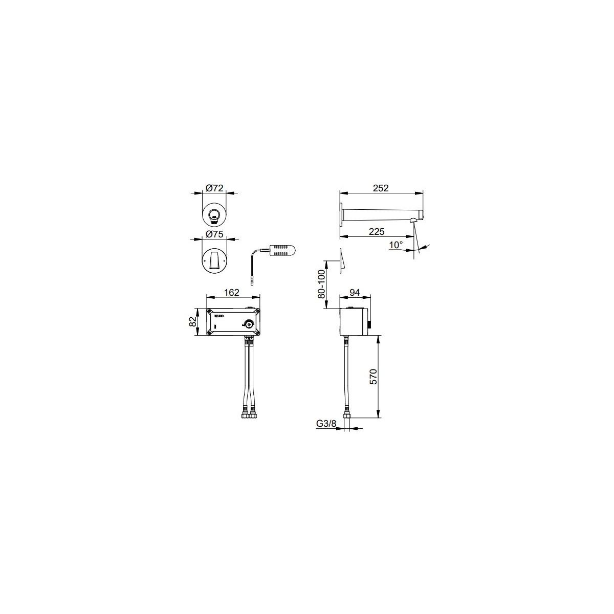 - mezclador de pared con sensor, unidad de control bajo encimera