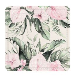 Preciosa alfombrilla de baño con un motivo de hojas exóticas y flores de anturio - para la ducha. Dimensiones: 55 cm x 55 cm