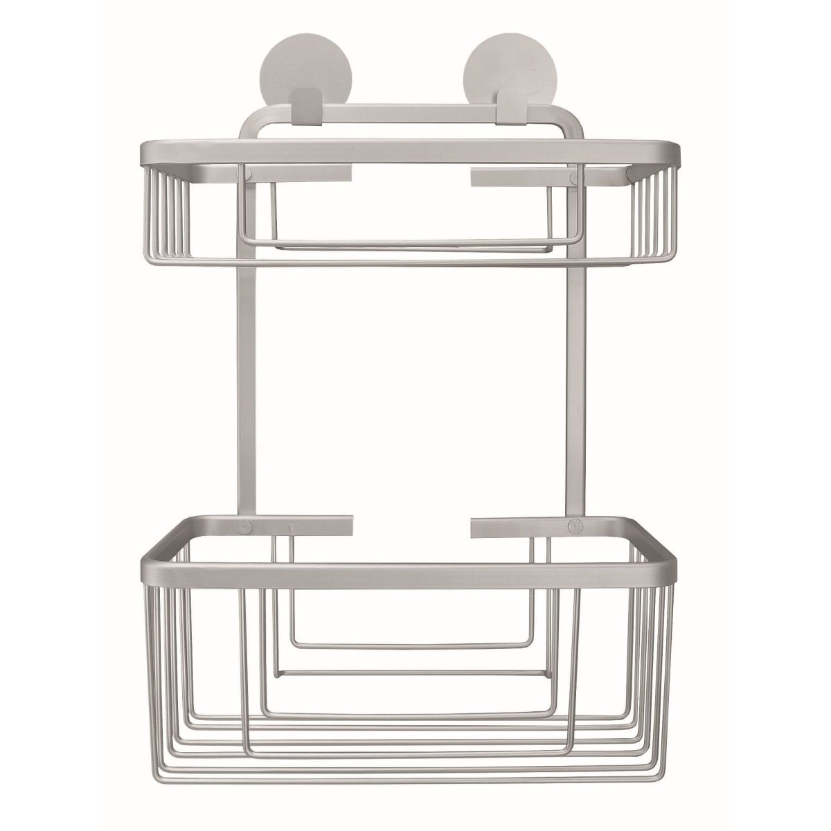 Cesta de baño doble. Duradera y resistente cesta de ducha rectangular de doble nivel para accesorios de baño y cosméticos de lavado, de la gama Rocco, montada en la pared con cinta de montaje resistente.