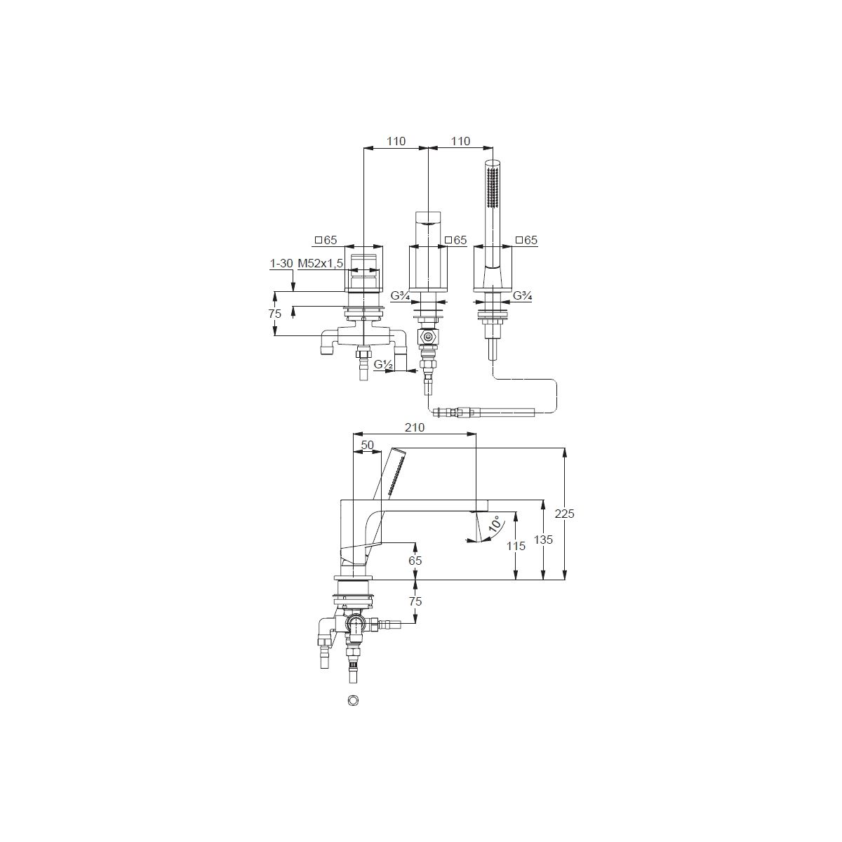 - bañera: caudal de agua 23 l/min a una presión de 3 bar