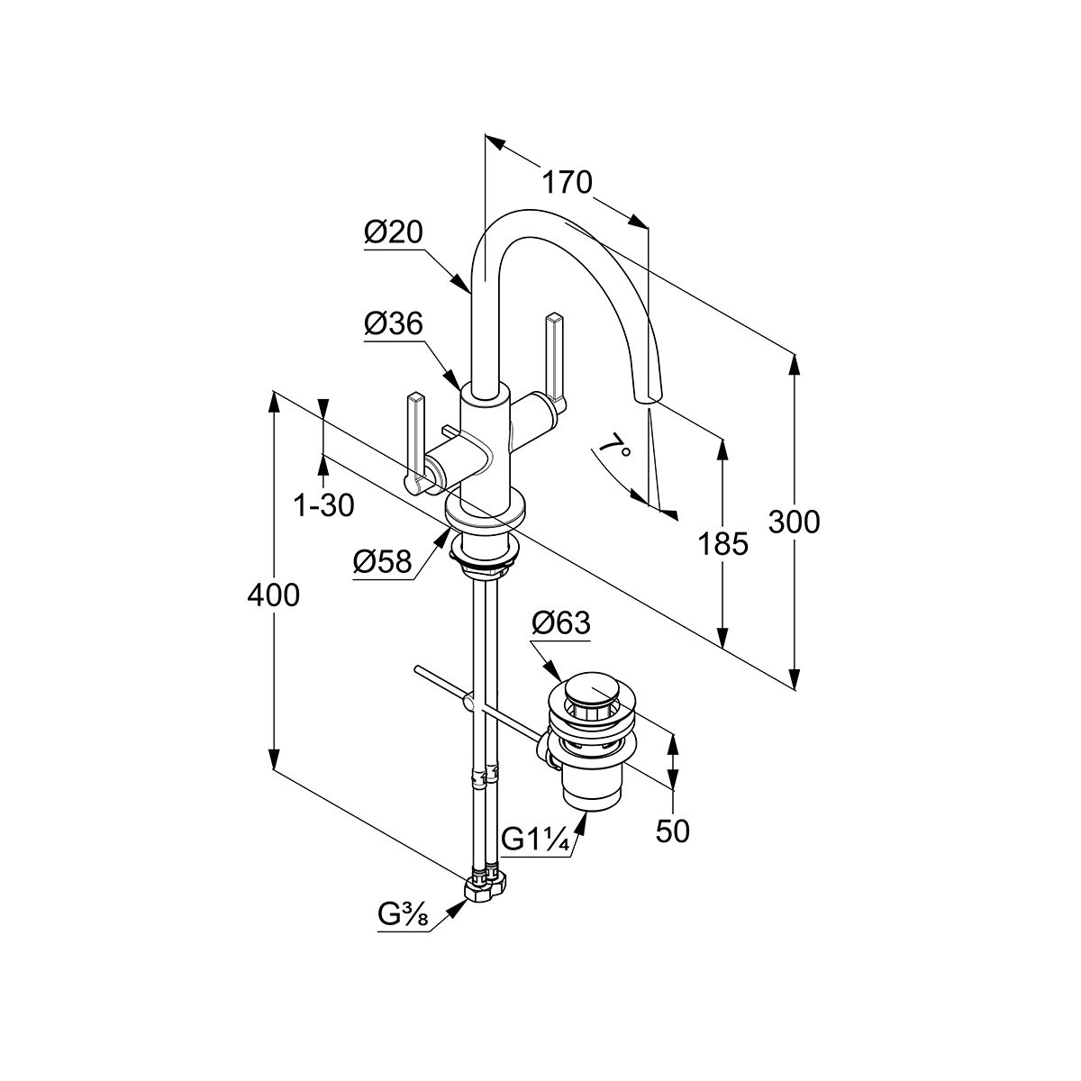 Kludi Nova Fonte Puristic grifo para lavabo de pie níquel 20118N515