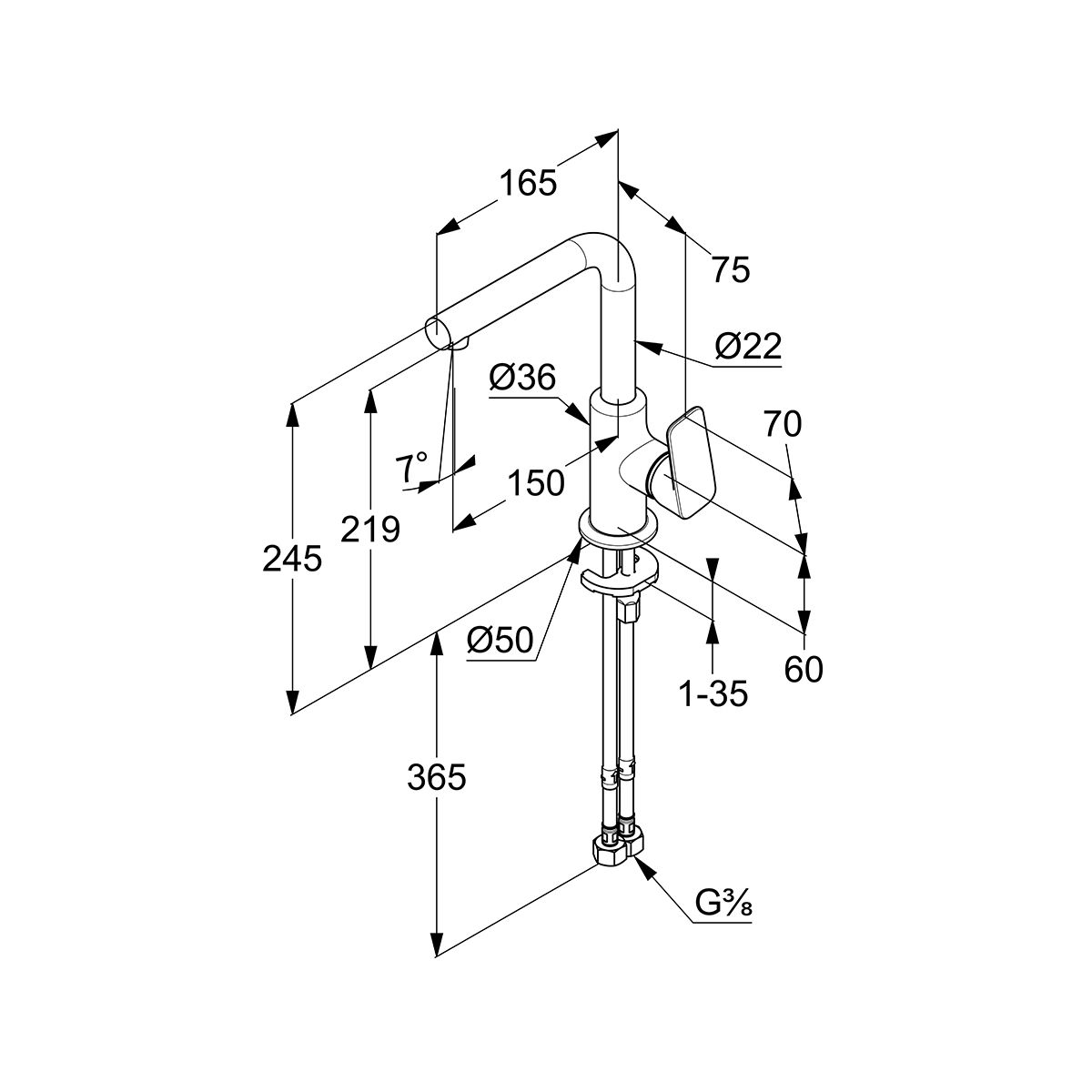 - instalación de pie de 1 orificio