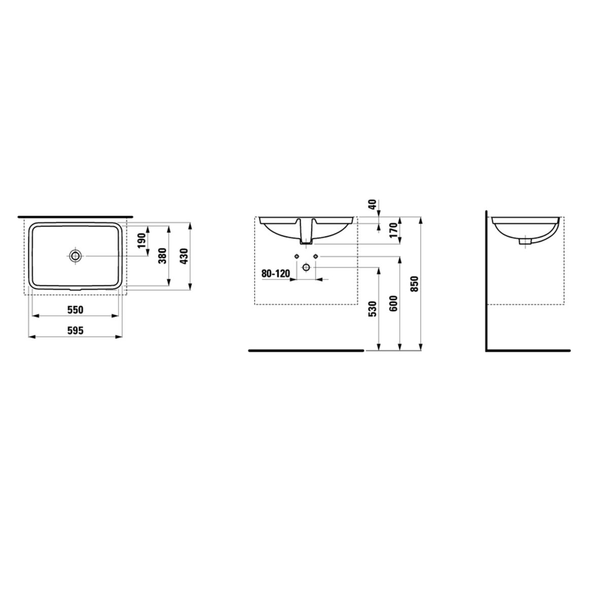 Laufen Pro S umywalka 55x38 cm prostokątna podblatowa biała H8119680001091