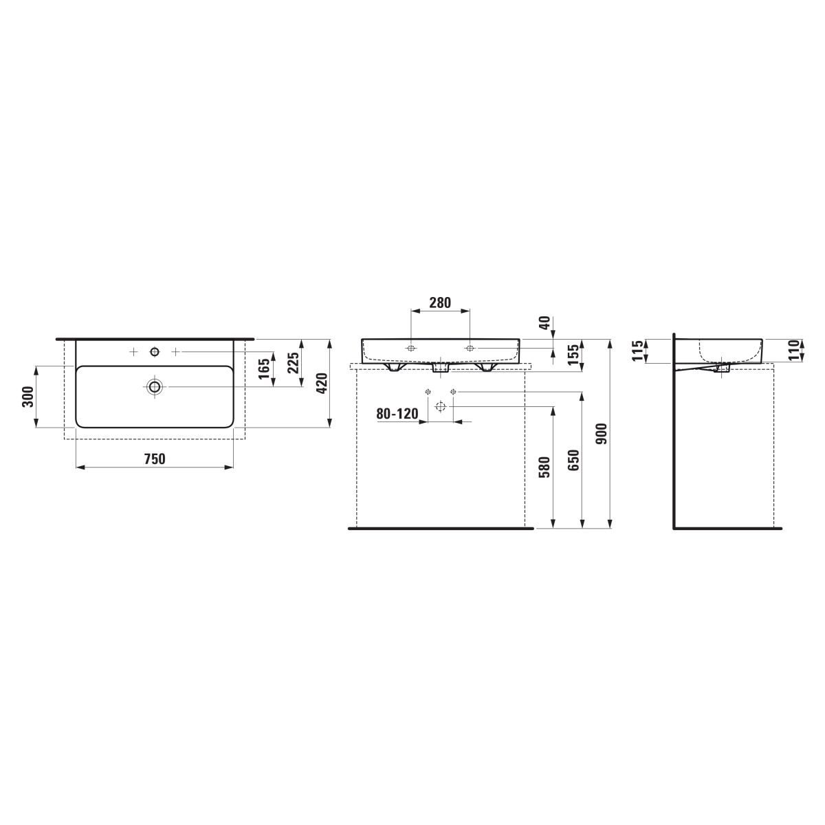 - la base rectificada del lavabo permite colocarlo sobre la encimera (requiere montaje mural)