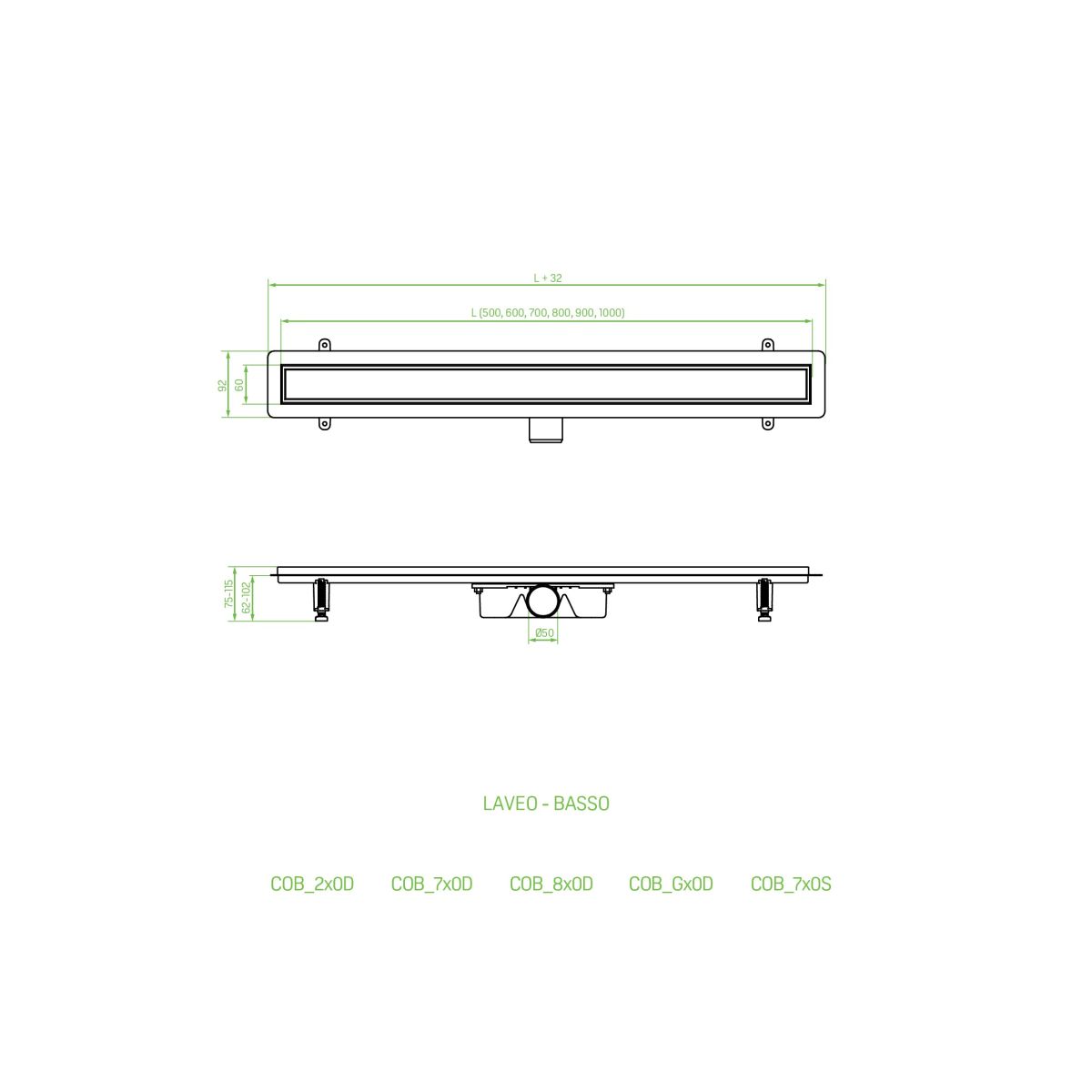 Laveo Basso desagüe lineal con rejilla 60 cm acero COB260D