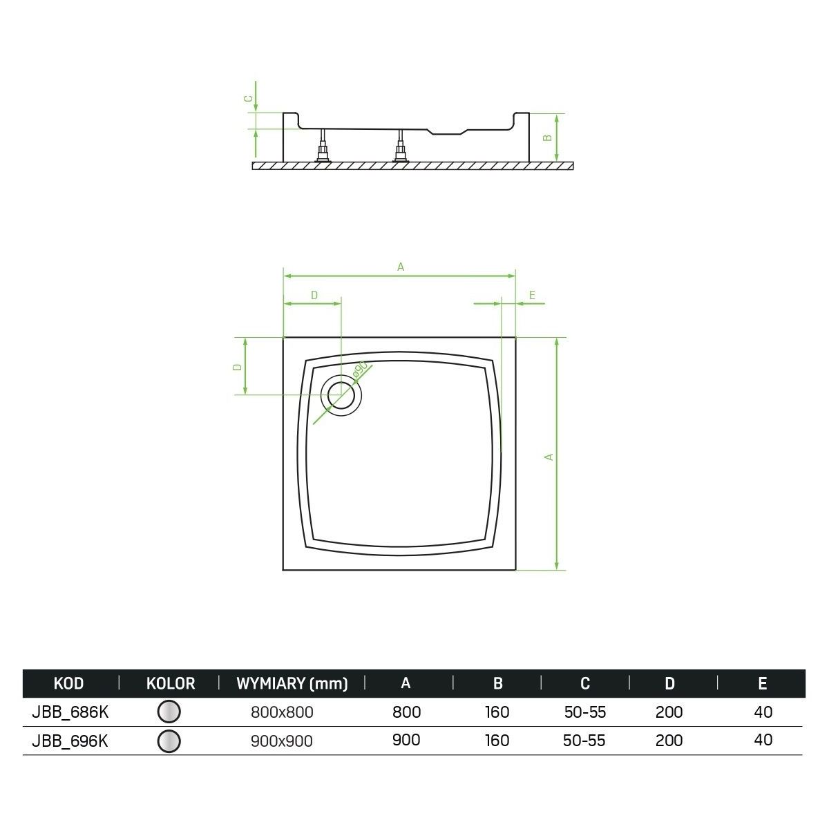 Laveo Bresso cabina con plato de ducha 90x90 cm cuadrada negro mate/vidrio transparente JKDD796K