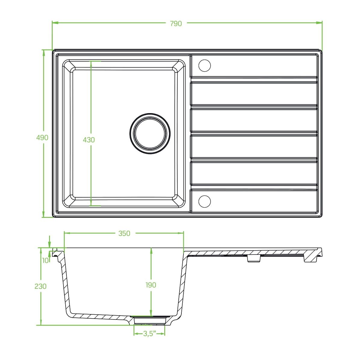 - la tecnología de producción de los fregaderos de granito se basa en una mezcla patentada de materias primas, Poligran, que combina un 80% de minerales y un 20% de resinas de poliéster