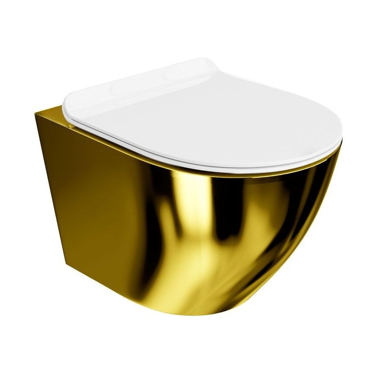 LaVita Sofi Slim Gold/White taza de inodoro con asiento de cierre suave suspendido sin reborde blanco-dorado brillante 5900378314660