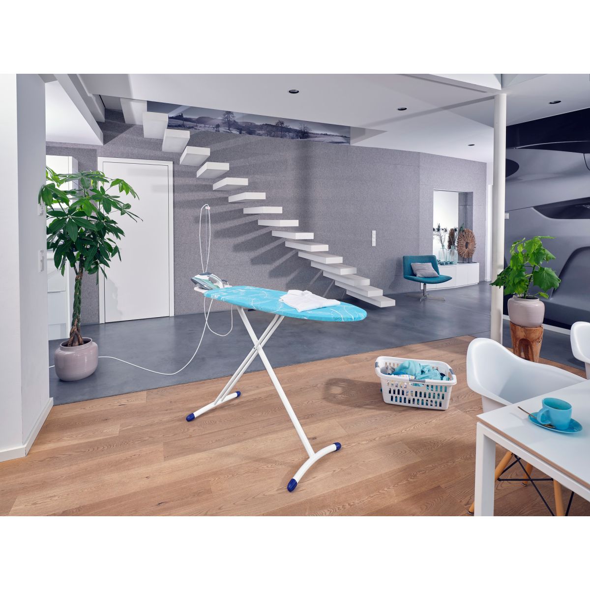 La Air Board M Black Plus NF de Leifheit es una tabla que hace que planchar sea mucho más cómodo y lleve mucho menos tiempo. En una combinación de colores muy actual y atemporal, este modelo se ha creado con materiales duraderos que mantendrán la tabla en su sitio durante años. La parte superior está fabricada con plástico EPP extremadamente ligero y resistente a la deformación. El marco de la tabla está formado por tubos duraderos de 28 mm de diámetro, acabados con tapones antideslizantes. Toda la estructura es muy estable y pesa sólo 5,1 kg. Se pliega hasta alcanzar un tamaño compacto. Gracias a la ligereza de los materiales, puede utilizarse y transportarse cómodamente. Sobre la tabla hay una cubierta con tecnología Thermo Reflect, que refleja el vapor y el calor de la plancha fuera de la tabla, de modo que la ropa se plancha por ambos lados al mismo tiempo. Esto acelera el trabajo y alisa aún más los tejidos.