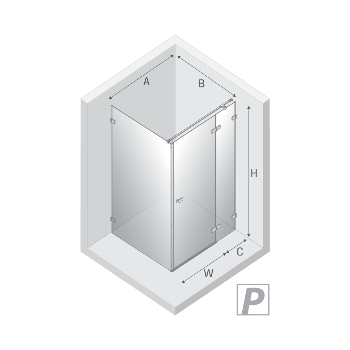 - anchura de la puerta con pared corta (A) 79,2-80,2 cm