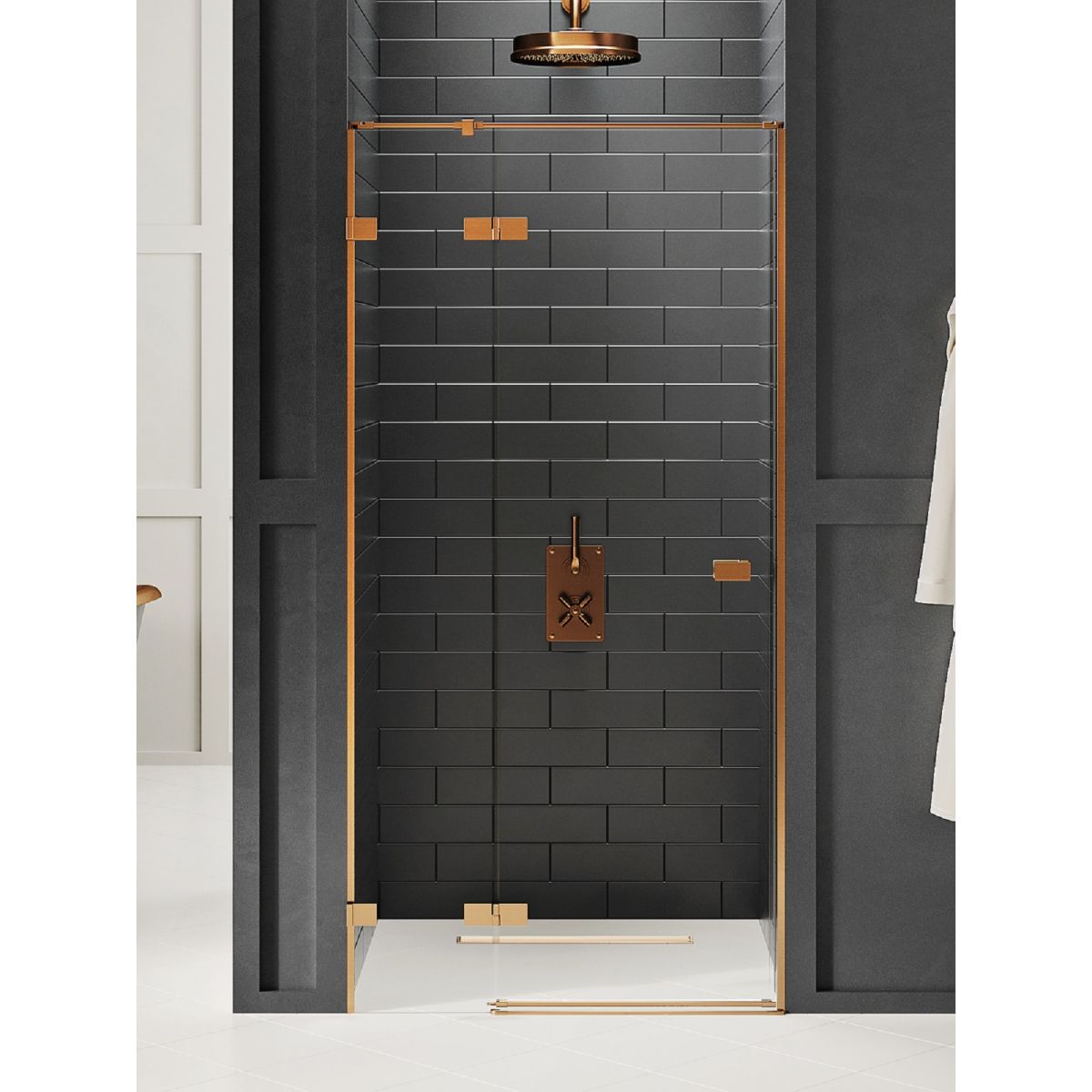 New Trendy Avexa Copper Brushed puerta de ducha 80 cm oscilante cobre cepillado/vidrio transparente EXK-3531