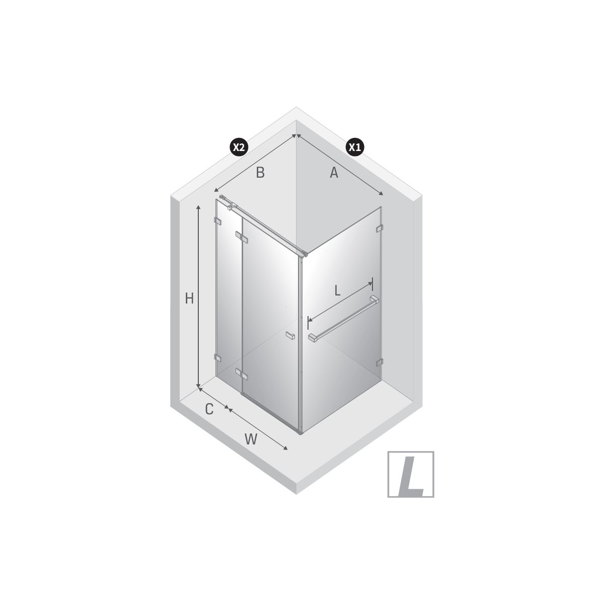 - rango de ajuste (X1) a la línea central del cristal de la cabina: 117 - 118 cm