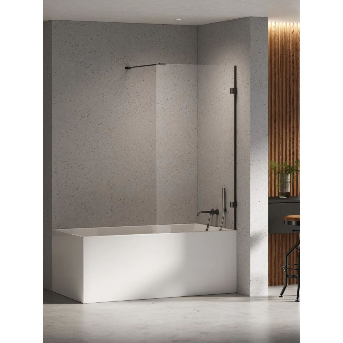 New Trendy Eventa Black Chrome mampara de bañera 80 cm una pieza negro brillo/vidrio transparente EXK-5690