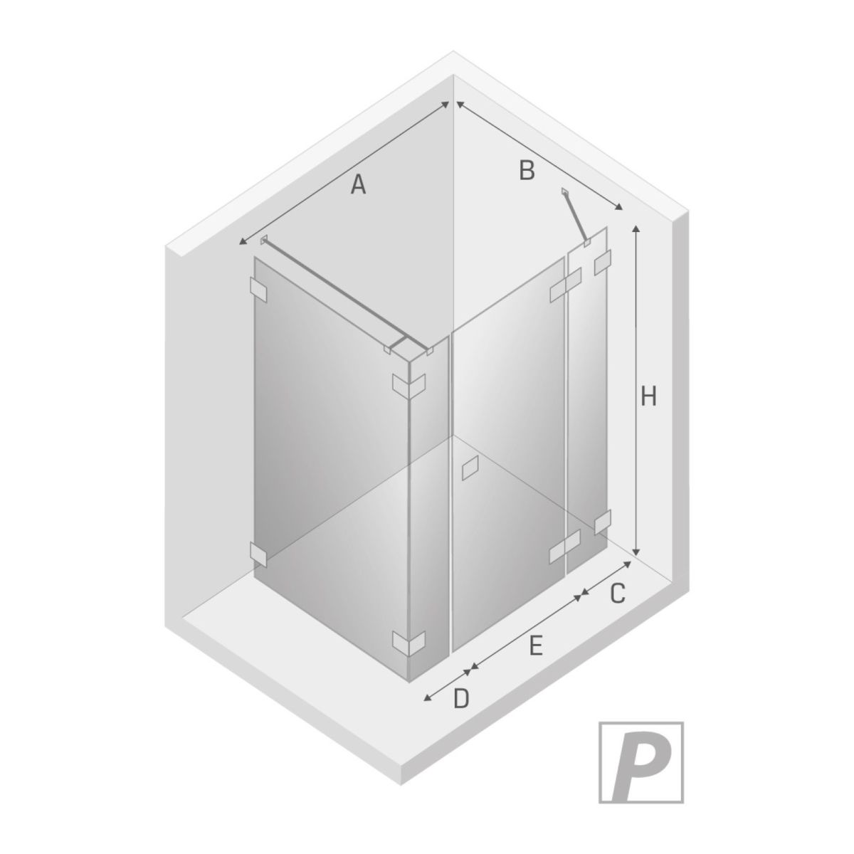 - anchura de la puerta con pared corta (A) 131,3-132,3 cm