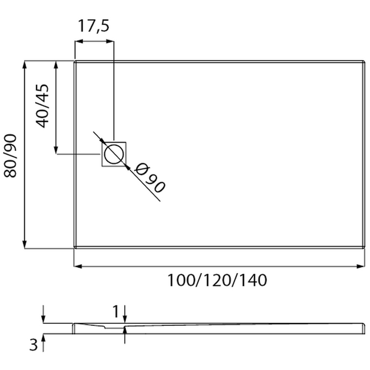Lado más corto [cm]: 90