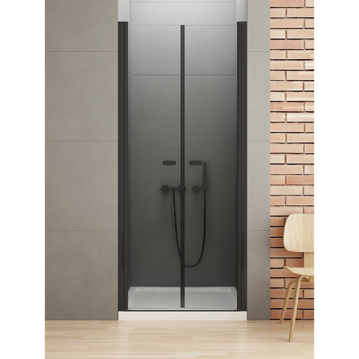 El modelo New Soleo Black presenta elegantes detalles en negro con acabado mate. La puerta de ducha incorpora un cristal de seguridad templado de 6 mm de grosor con revestimiento protector Active Shield 2.0 y cuenta con una bisagra de columna, que permite que la puerta oscile hacia fuera y hacia dentro. El producto puede instalarse con o sin plato de ducha.