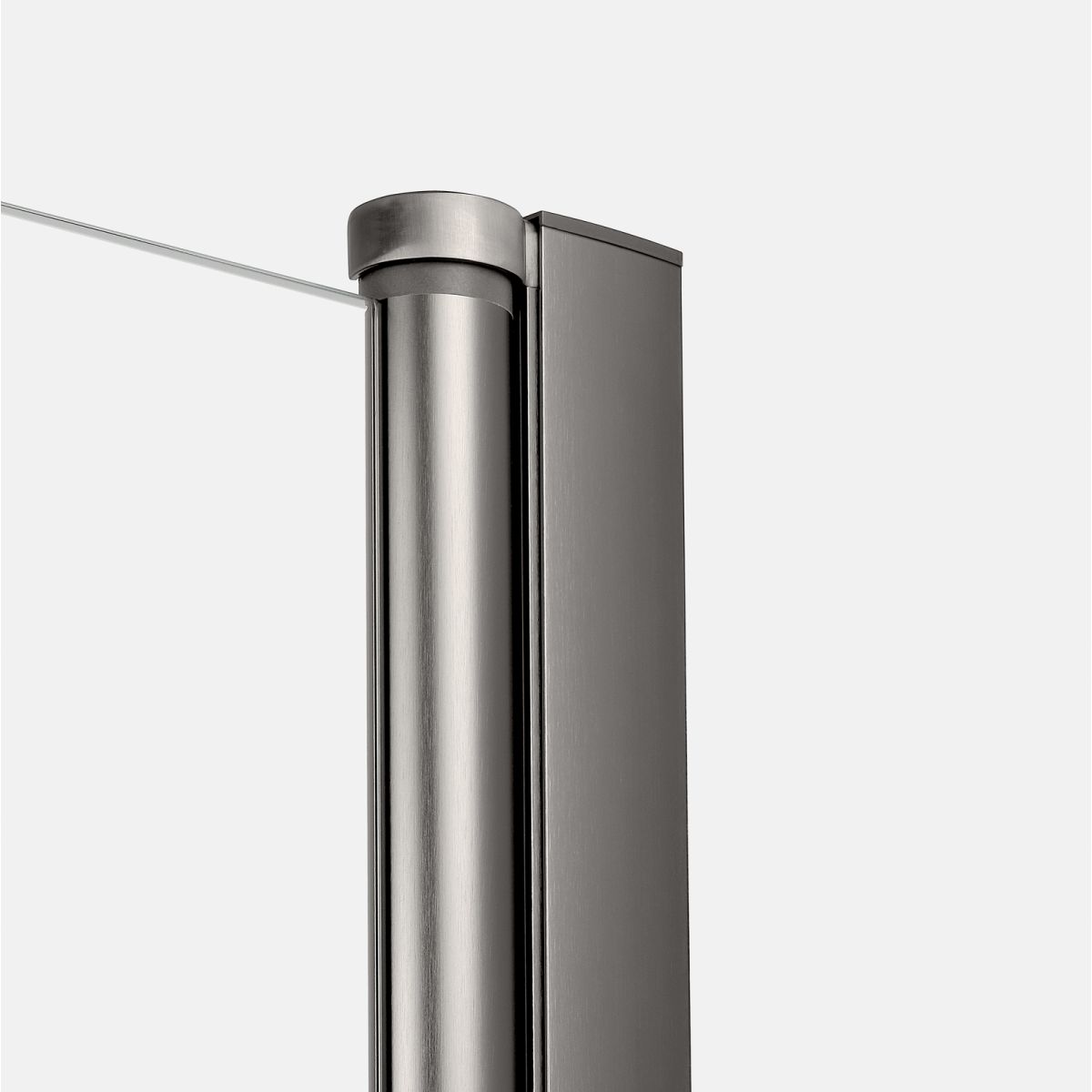 El modelo New Soleo Gunmetal Brushed presenta elegantes detalles en color gris plomizo con acabado cepillado. Las cabinas de ducha están equipadas con cristales de seguridad templados de 6 mm de grosor, con revestimiento protector Active Shield 2.0. Cuentan con una bisagra de columna que permite abrir la puerta hacia fuera y hacia dentro. El producto se puede instalar con o sin plato de ducha.
