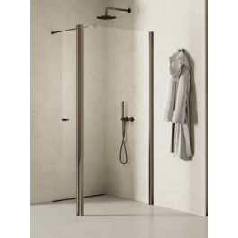 El nuevo modelo Soleo Gunmetal Brushed presenta elegantes detalles en bronce de cañón con un acabado cepillado. Las mamparas de ducha incorporan un cristal de seguridad templado de 6 mm de grosor con revestimiento Active Shield. La pared adicional dispone de una bisagra de columna que permite inclinarla hacia fuera y hacia dentro. El producto puede instalarse con o sin plato de ducha.