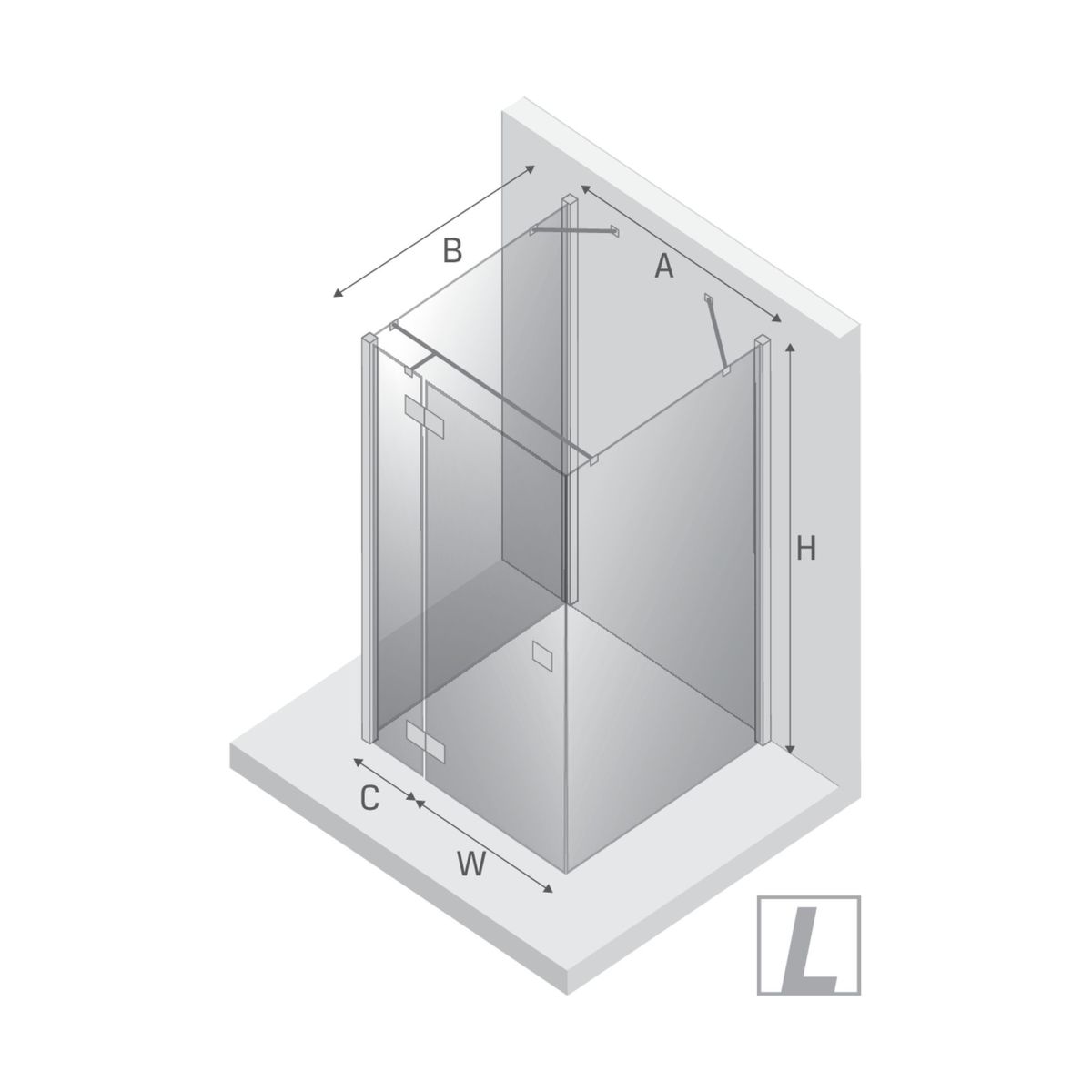 - anchura de la pared fija (C): 24,5 cm