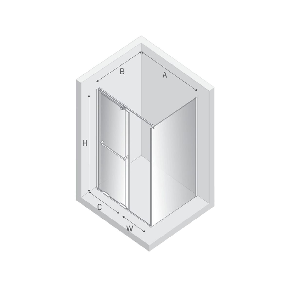 - anchura de la pared fija (C): 52,5 cm