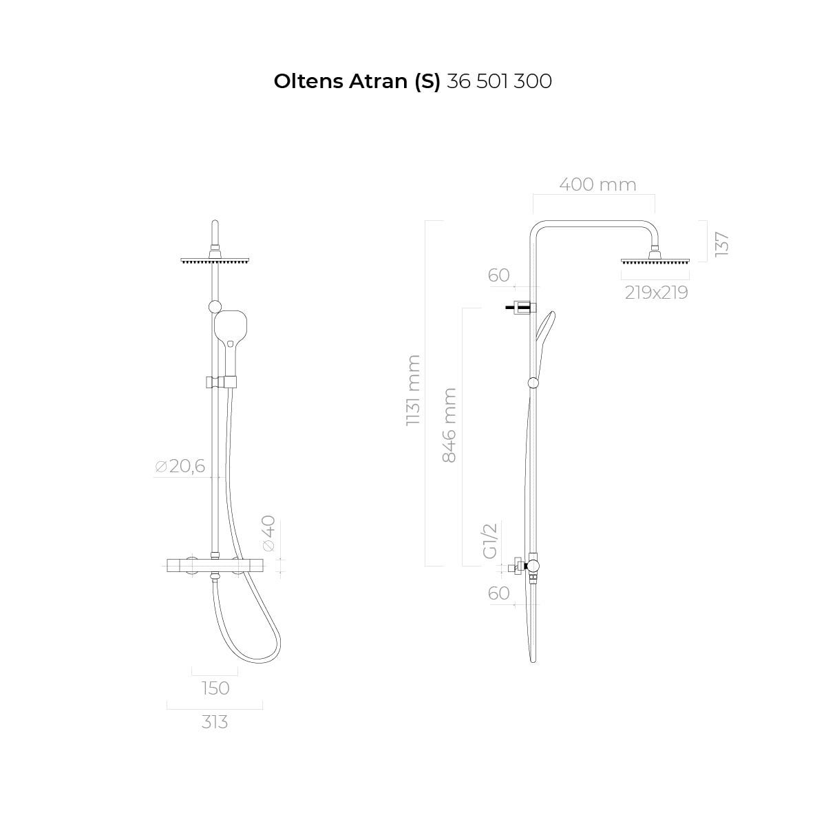 Oltens Atran conjunto de ducha a pared con termostato con rociador con efecto lluvia cromo 36501100