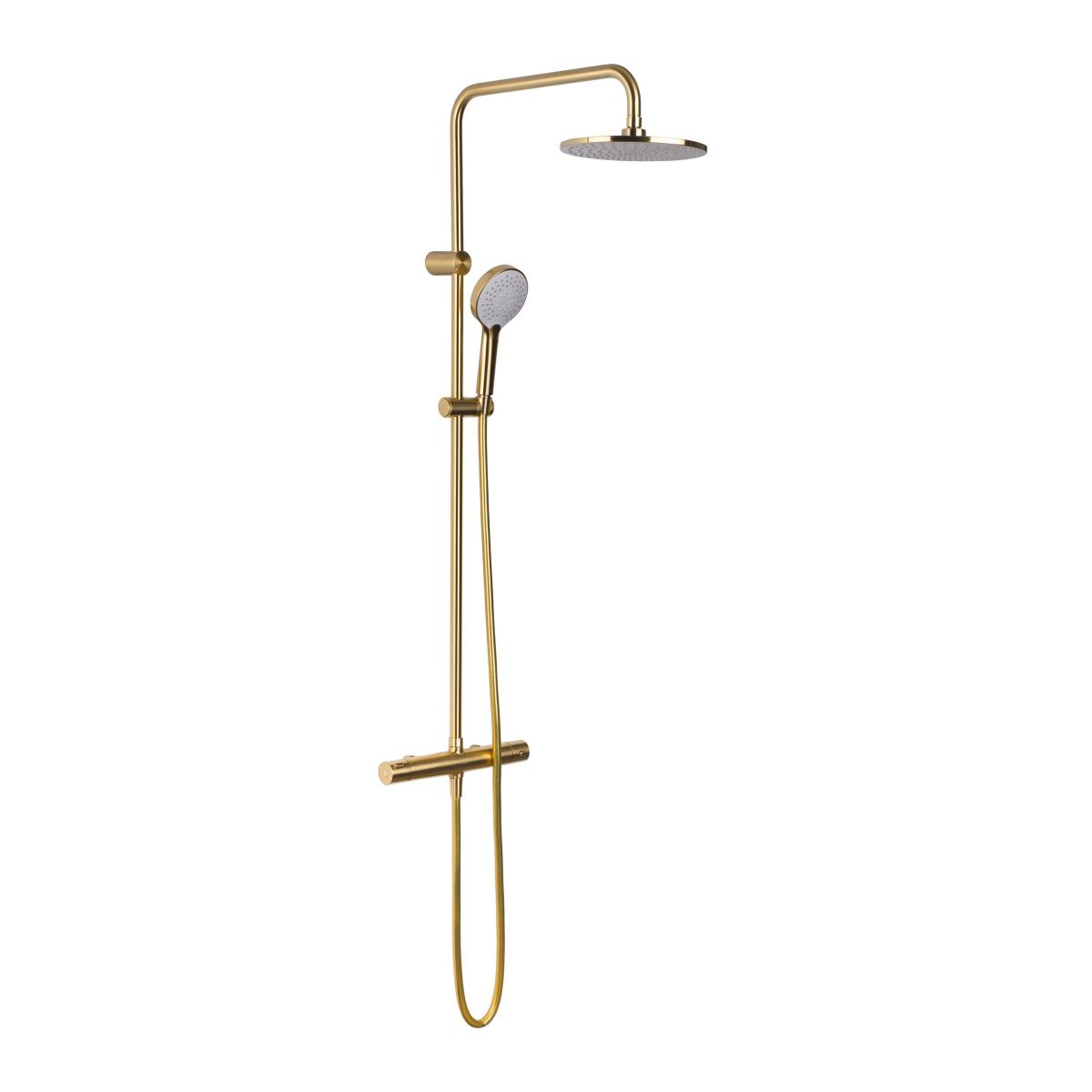 Oltens Atran conjunto de ducha a pared con termostato con rociador con efecto lluvia oro cepillado 36500810
