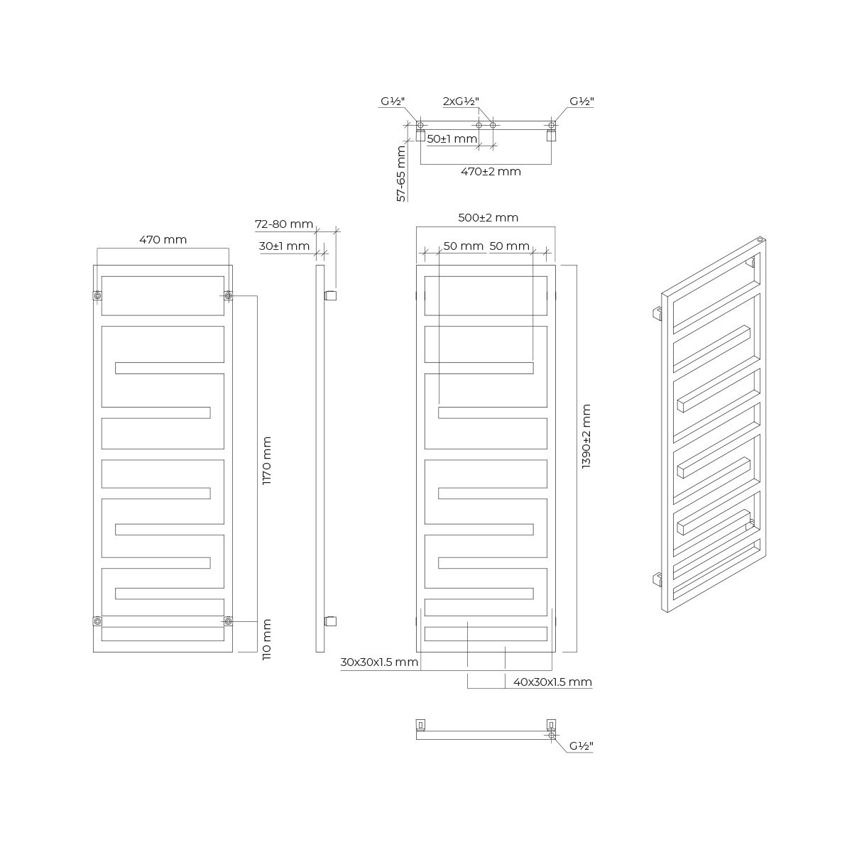 - conexión con una separación de 47 cm para la conexión inferior situada en los ejes verticales de los colectores del radiador