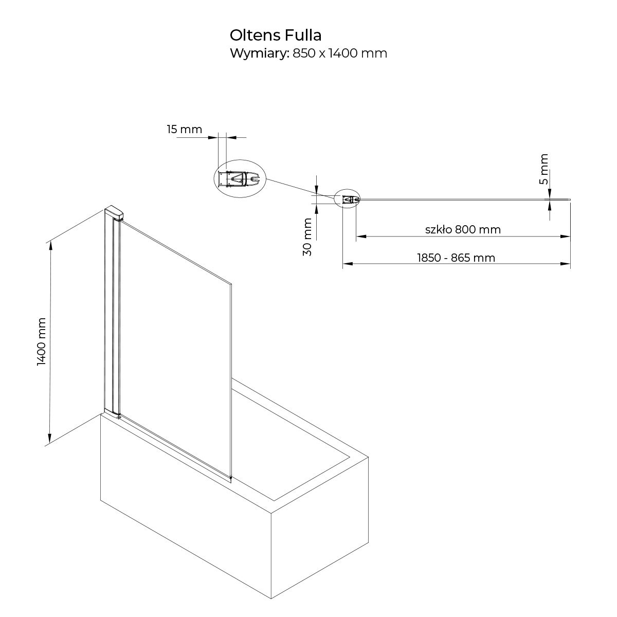 Oltens Fulla mampara de bañera 85 cm una pieza cromo brillo/vidrio transparente 23102100