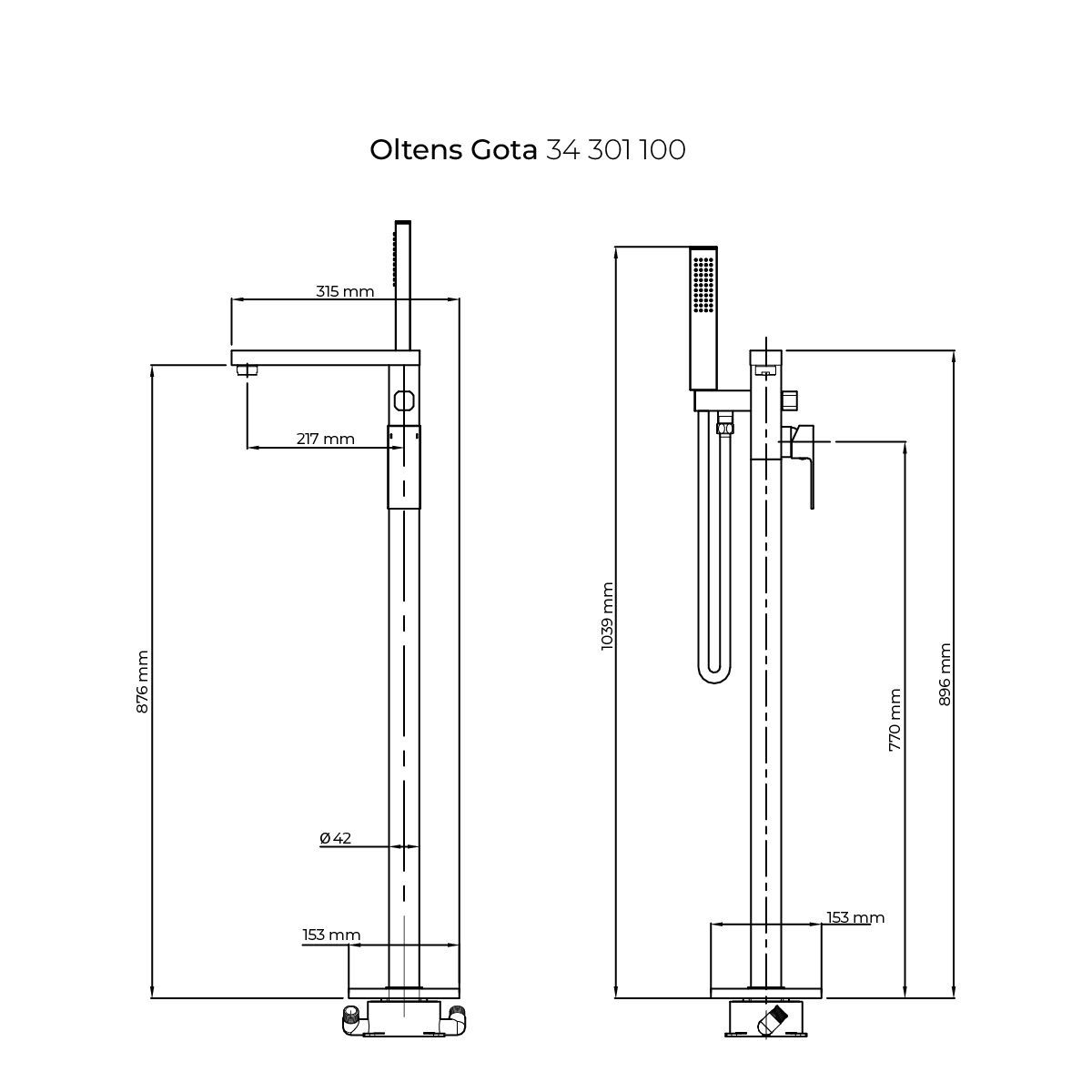 Oltens Gota grifo de bañera y ducha en suelo cromo 34301100