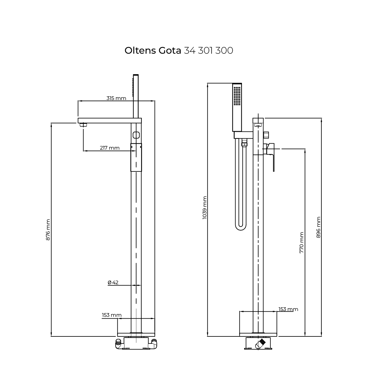 Oltens Gota grifo de bañera y ducha en suelo negro mate 34301300