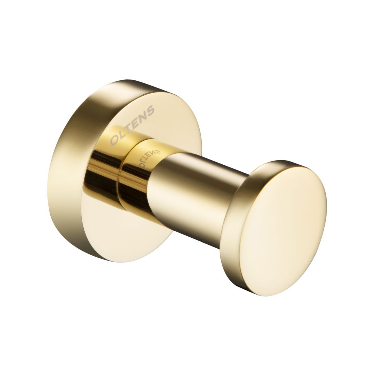 Los colgadores, ganchos y toalleros de Oltens están fabricados en latón recubierto con una capa de cromo y luego revestido con pintura PVD dorada, lo que hace que los productos sean muy duraderos, estéticos y elegantes. La fijación a la pared está oculta. Con cada producto se incluye un kit de fijación resistente a la corrosión.