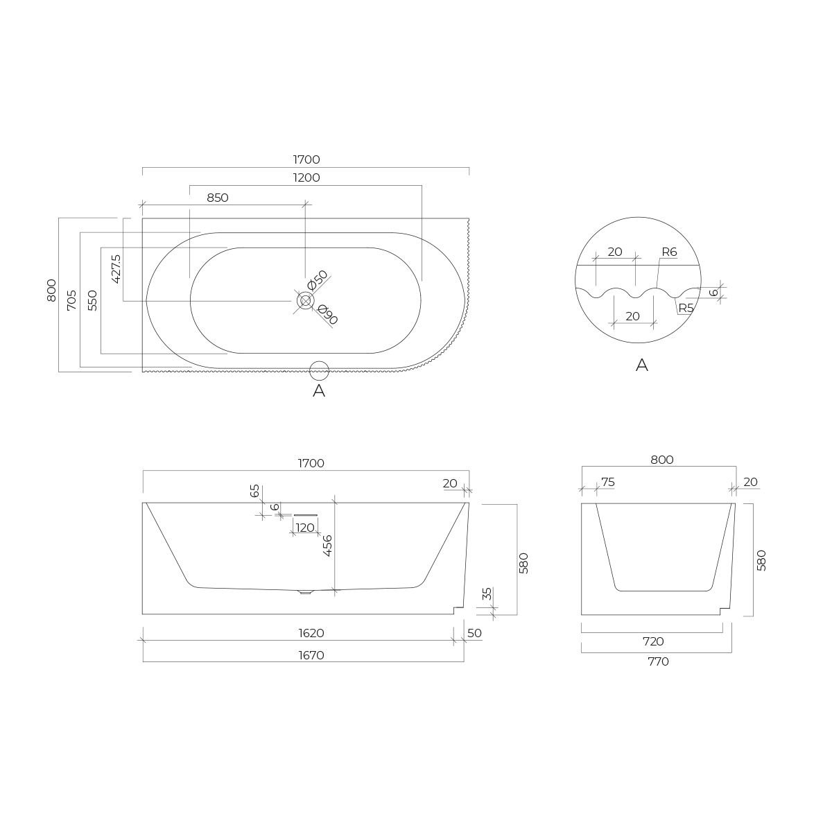 Oltens Hamnes bañera de esquina 170x80 cm oval blanco 11011000