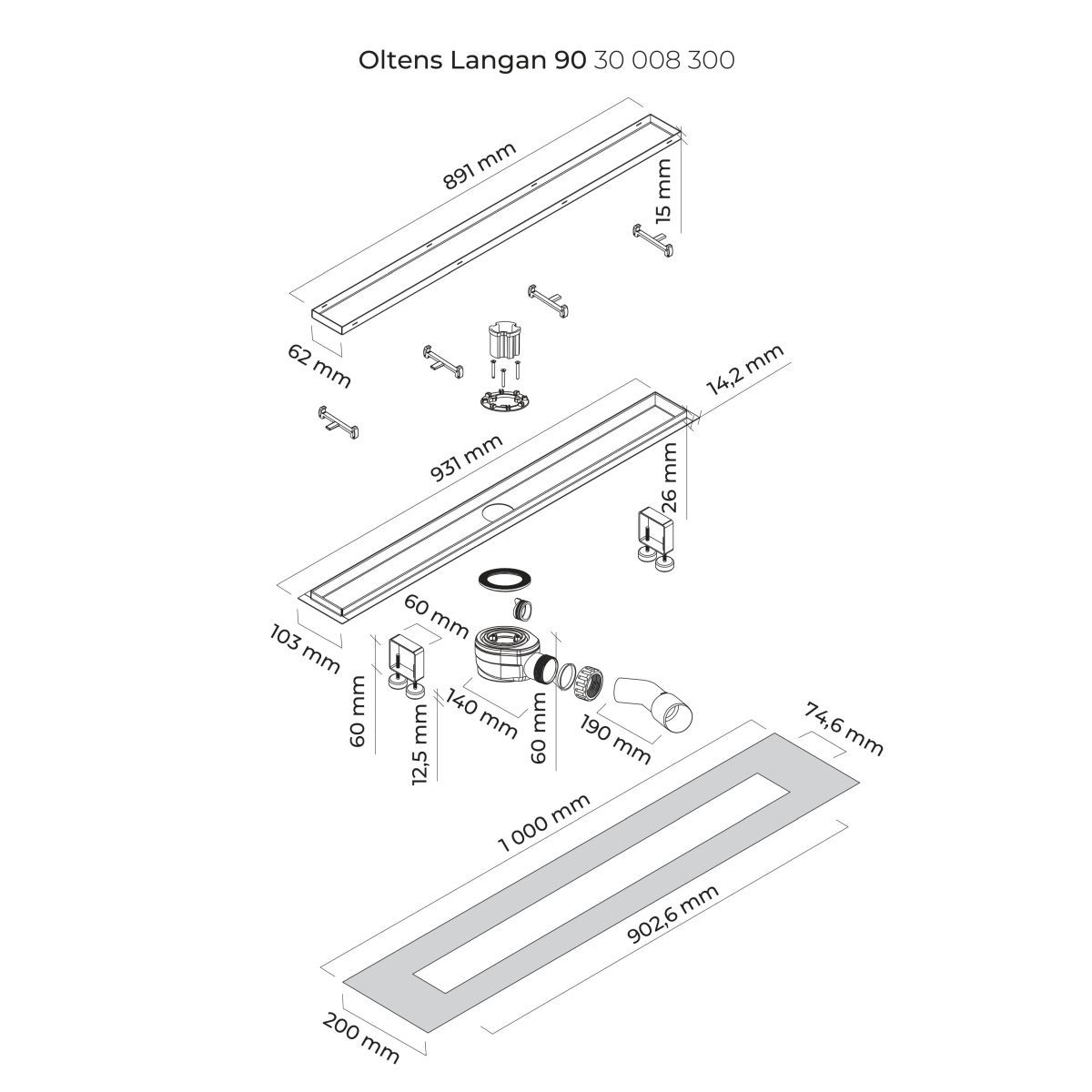 El desagüe de ducha lineal Langan de Oltens le permite crear una moderna zona de baño en su cuarto de baño sin compromisos. Sustituye la tradicional cabina de ducha por una atractiva solución sin barreras. El desagüe está equipado con un sifón bajo (6 cm) con un caudal de 54 l/min, por lo que puede utilizarse prácticamente en cualquier cuarto de baño, incluso en un bloque de pisos.