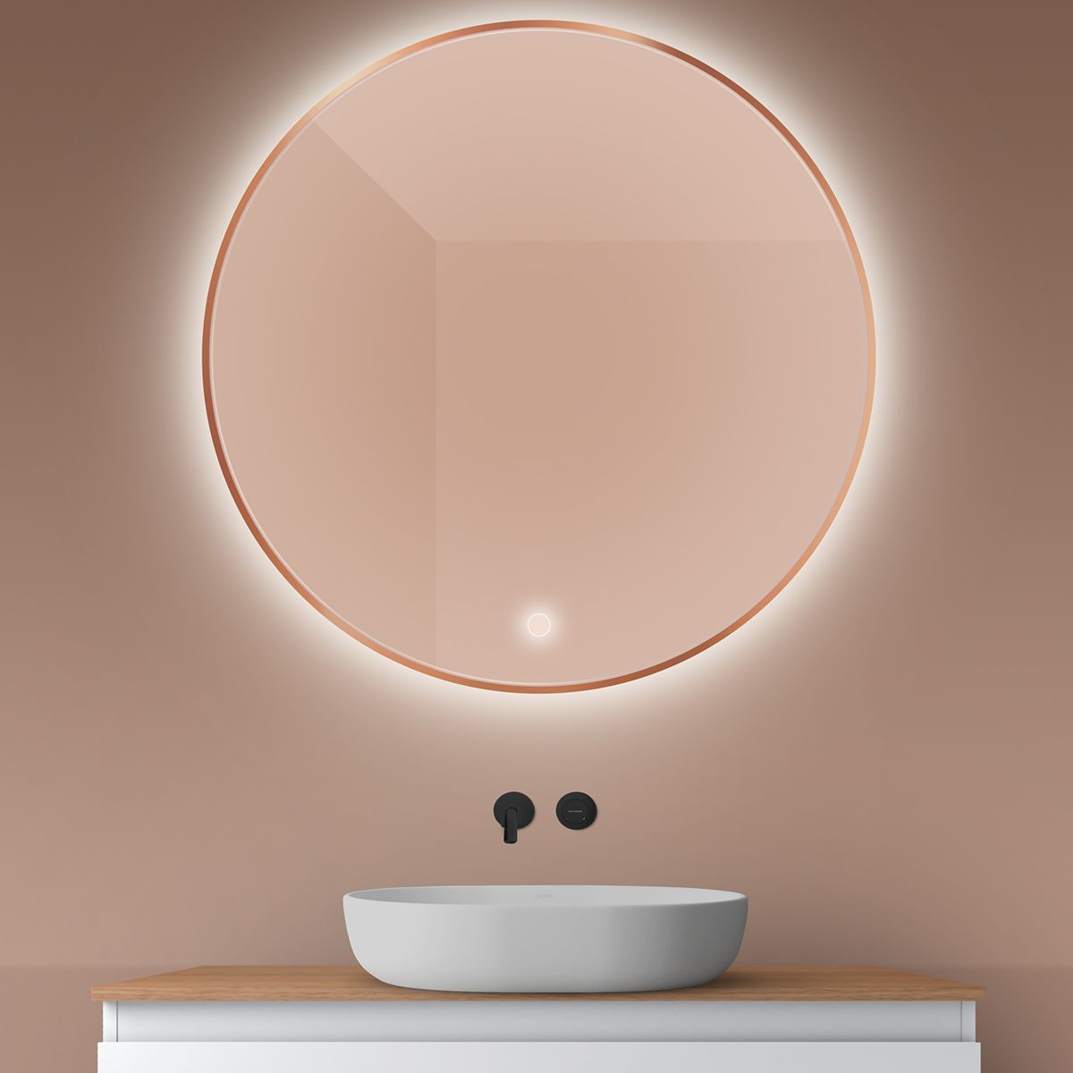 Oltens Nordlis espejo 100x100 cm circular con iluminación con lámina calefactora 64110610