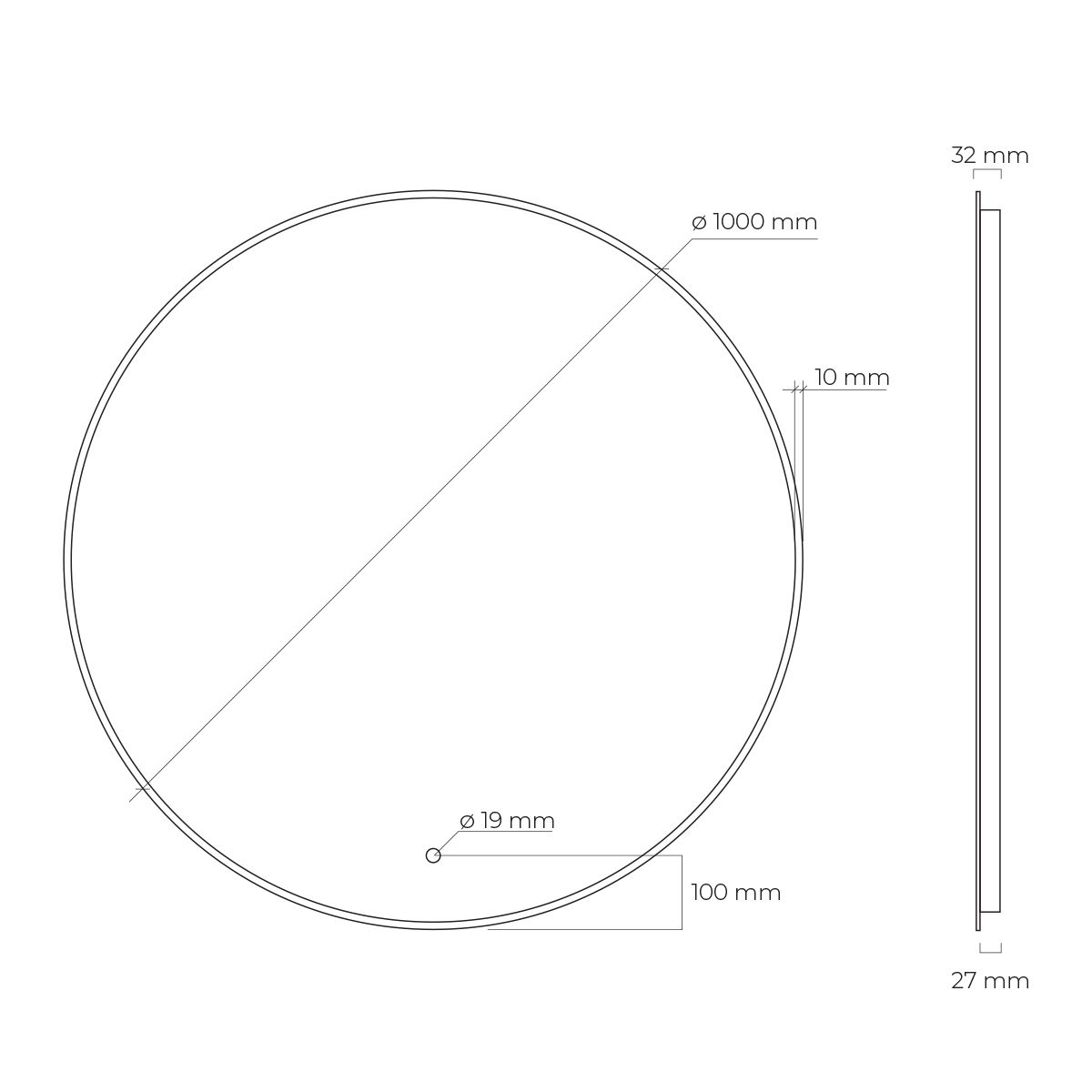 Oltens Nordlis espejo 100x100 cm circular con iluminación con lámina calefactora negro 64110300