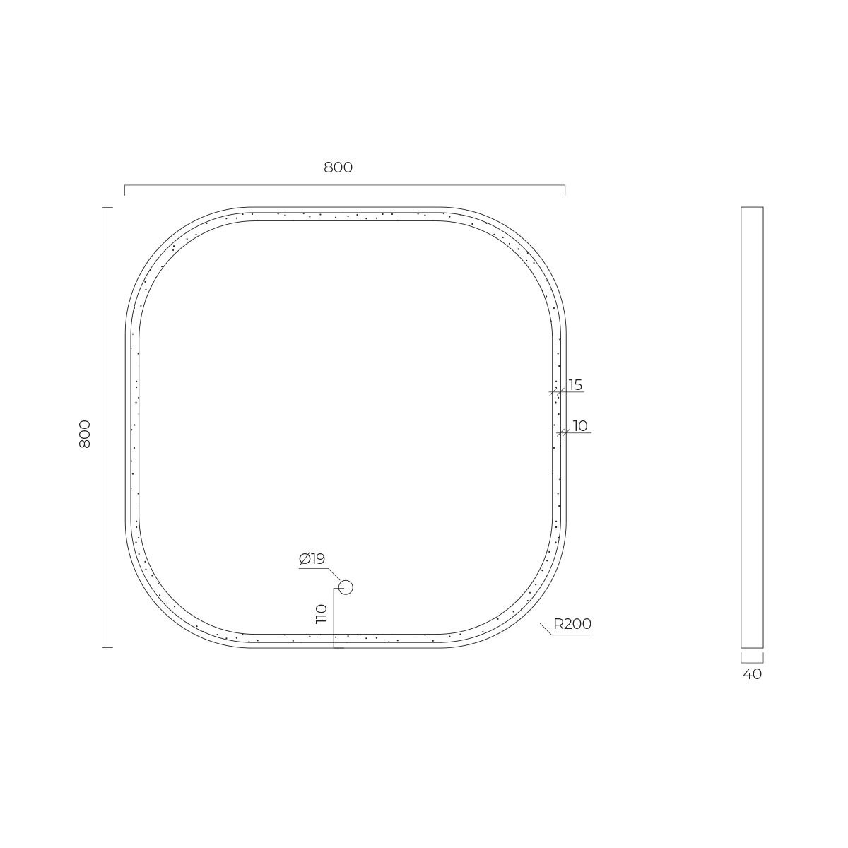 - iluminación en forma de tira de 1,5 cm de ancho en la parte frontal del espejo