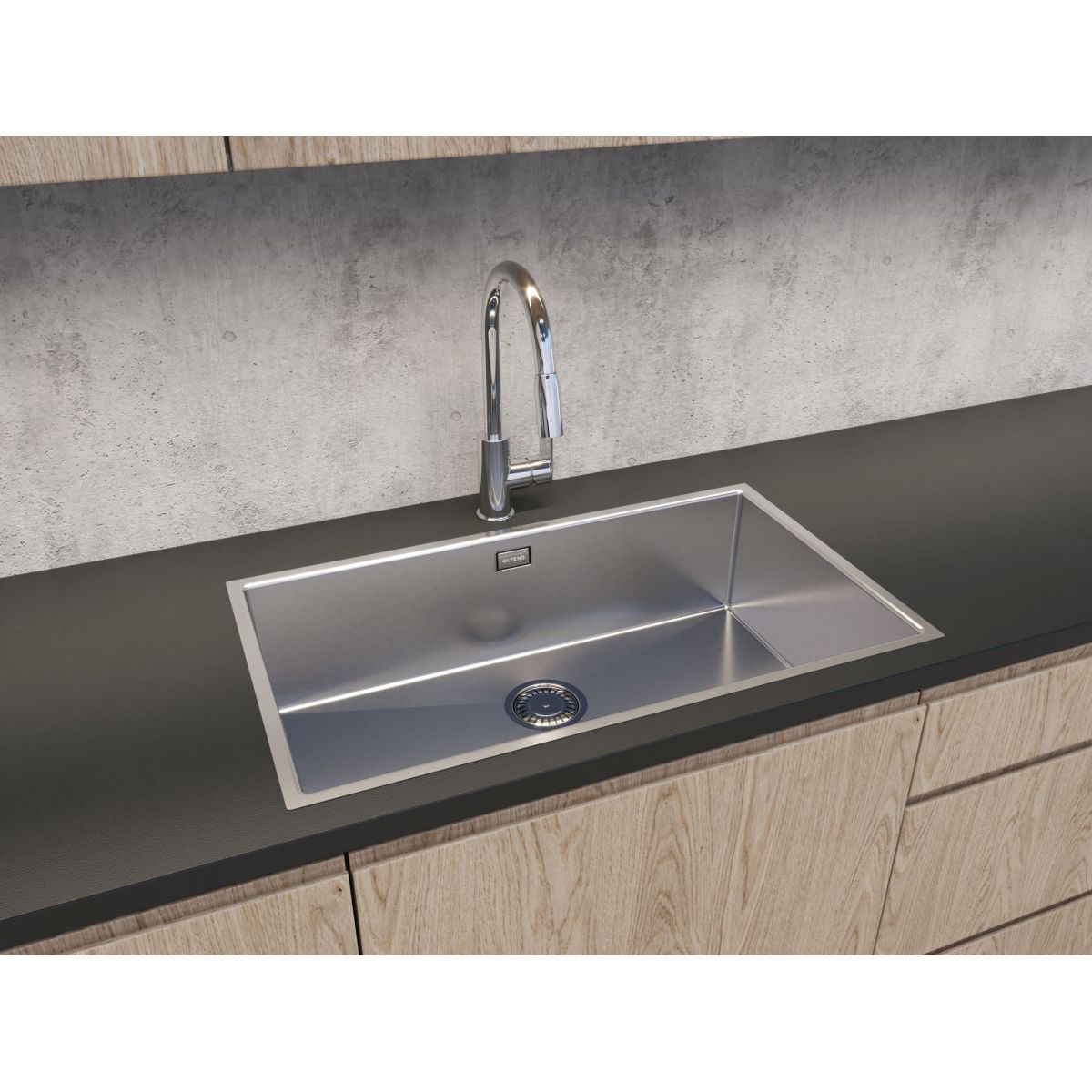 Fregadero de acero de un solo seno para armarios de 80 cm.