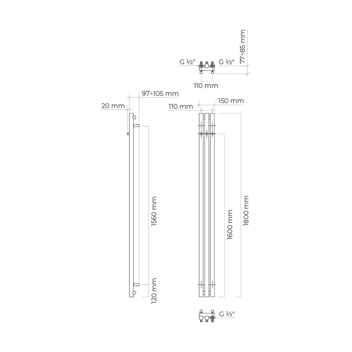 Oltens Stang radiador de baño decorativo 180x15 cm 55011610