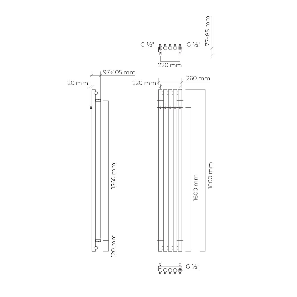 Oltens Stang radiador de baño decorativo 180x26 cm negro 55017300