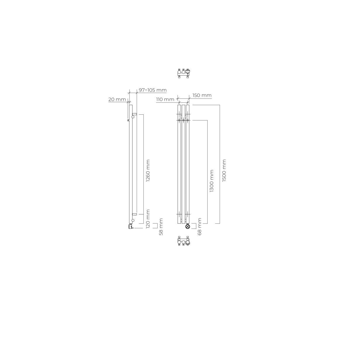 Oltens Stang radiador eléctrico 150x15 cm blanco 55119000