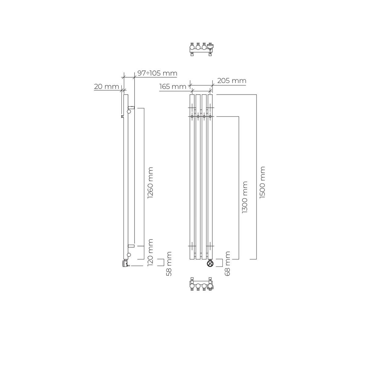 Oltens Stang radiador eléctrico 150x20.5 cm grafito 55120400