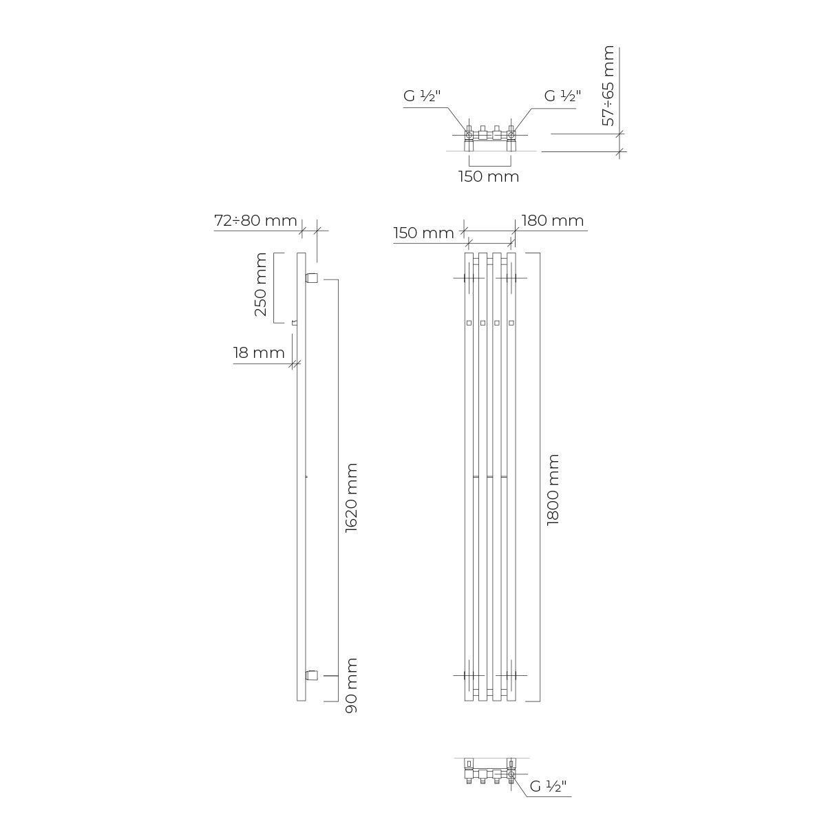 - Distancia entre conexiones C2 para la conexión inferior situada en los ejes verticales de los colectores: 15 cm