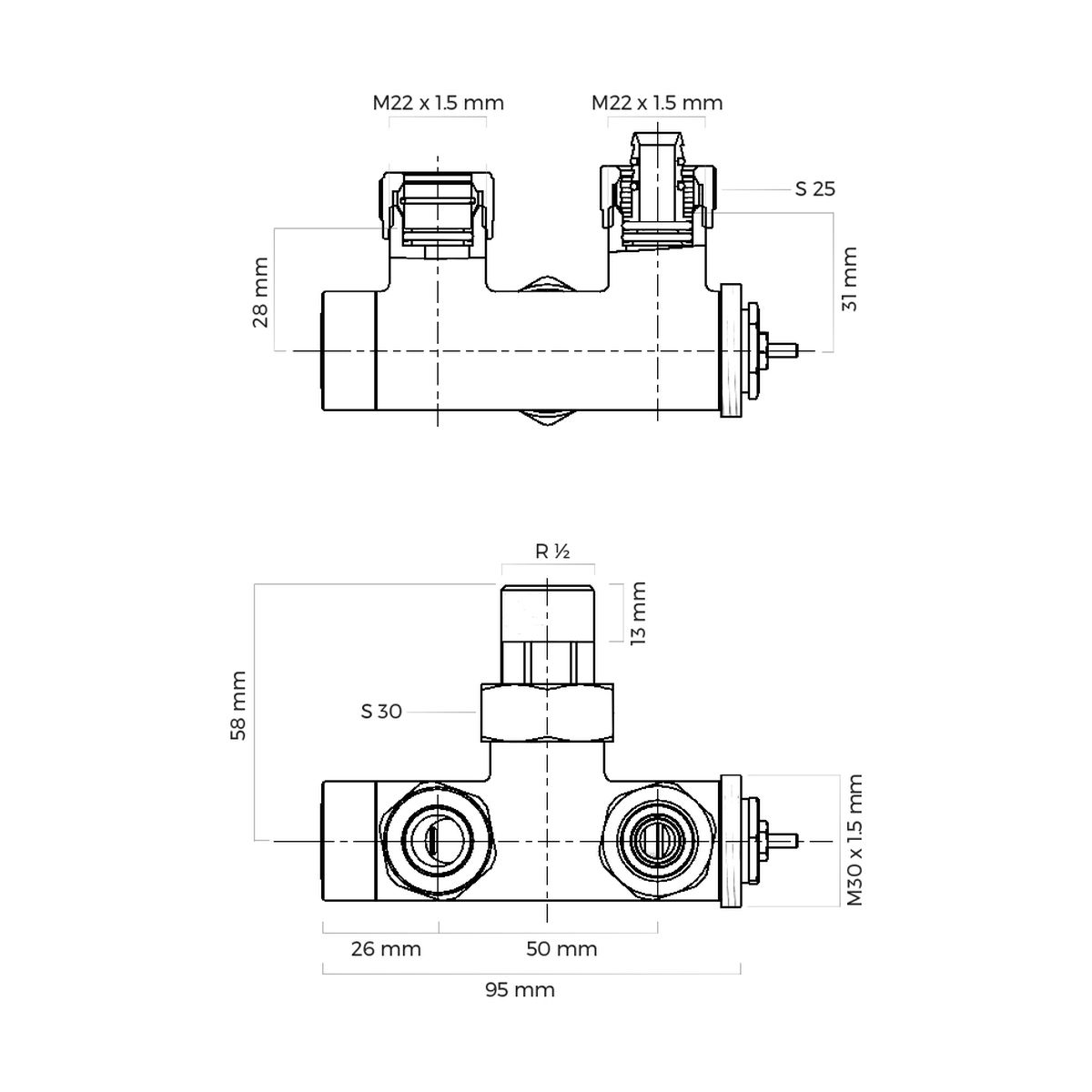 - están adaptados para su montaje en instalaciones de calefacción centralizadas realizadas con tubos de cobre 15x1 y plástico PEX/AluPEX 16x2