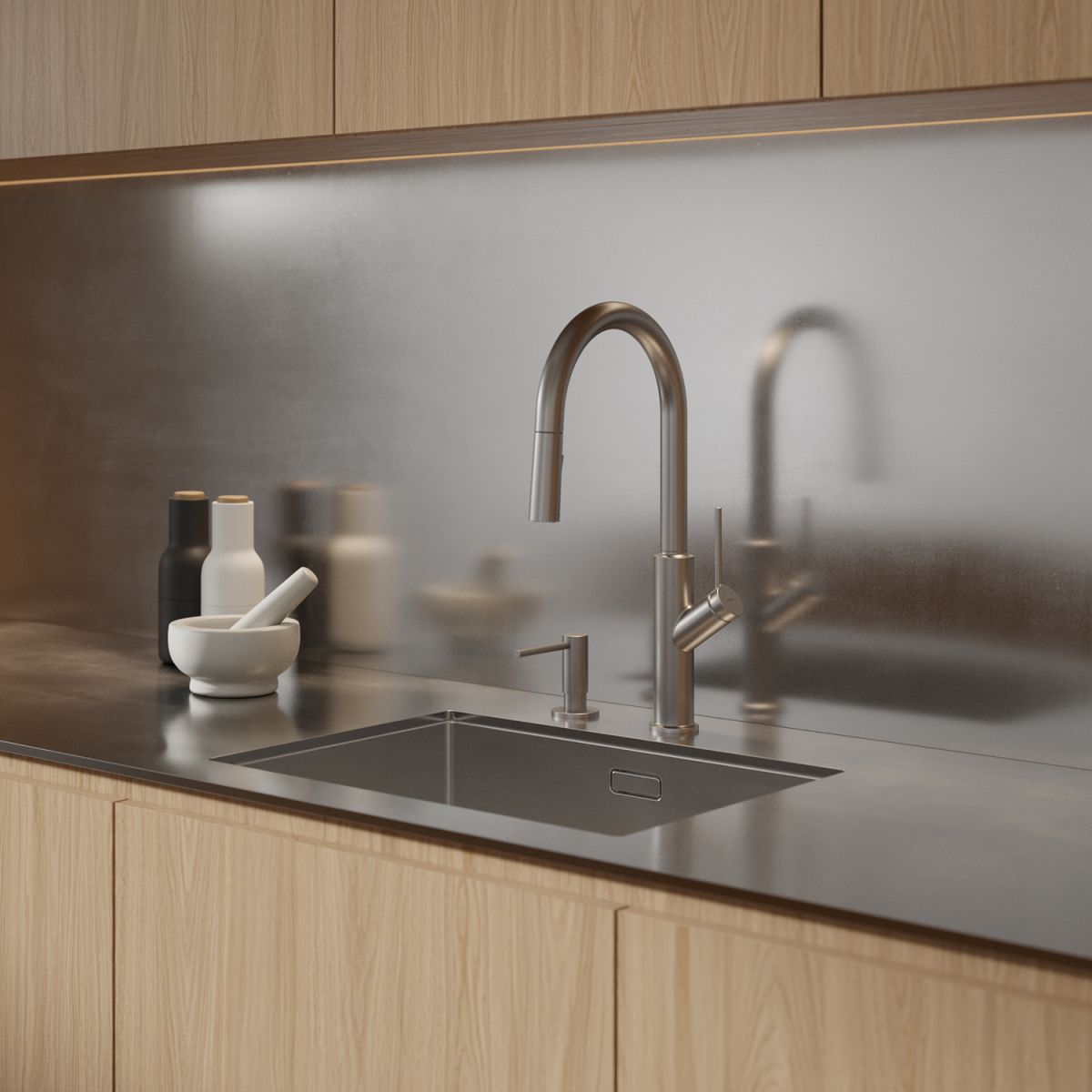 La colección BEND se distingue por su bella forma minimalista, basada en una armonía de círculos y curvas. Los grifos están equipados con un caño extraíble giratorio con ducha de doble función, que aumenta el alcance del chorro de agua y mejora el confort. La grifería está equipada con un cabezal cerámico de alta calidad y las innovadoras soluciones tecnológicas utilizadas reducen el consumo de agua a la mitad, al tiempo que garantizan la máxima comodidad de uso.