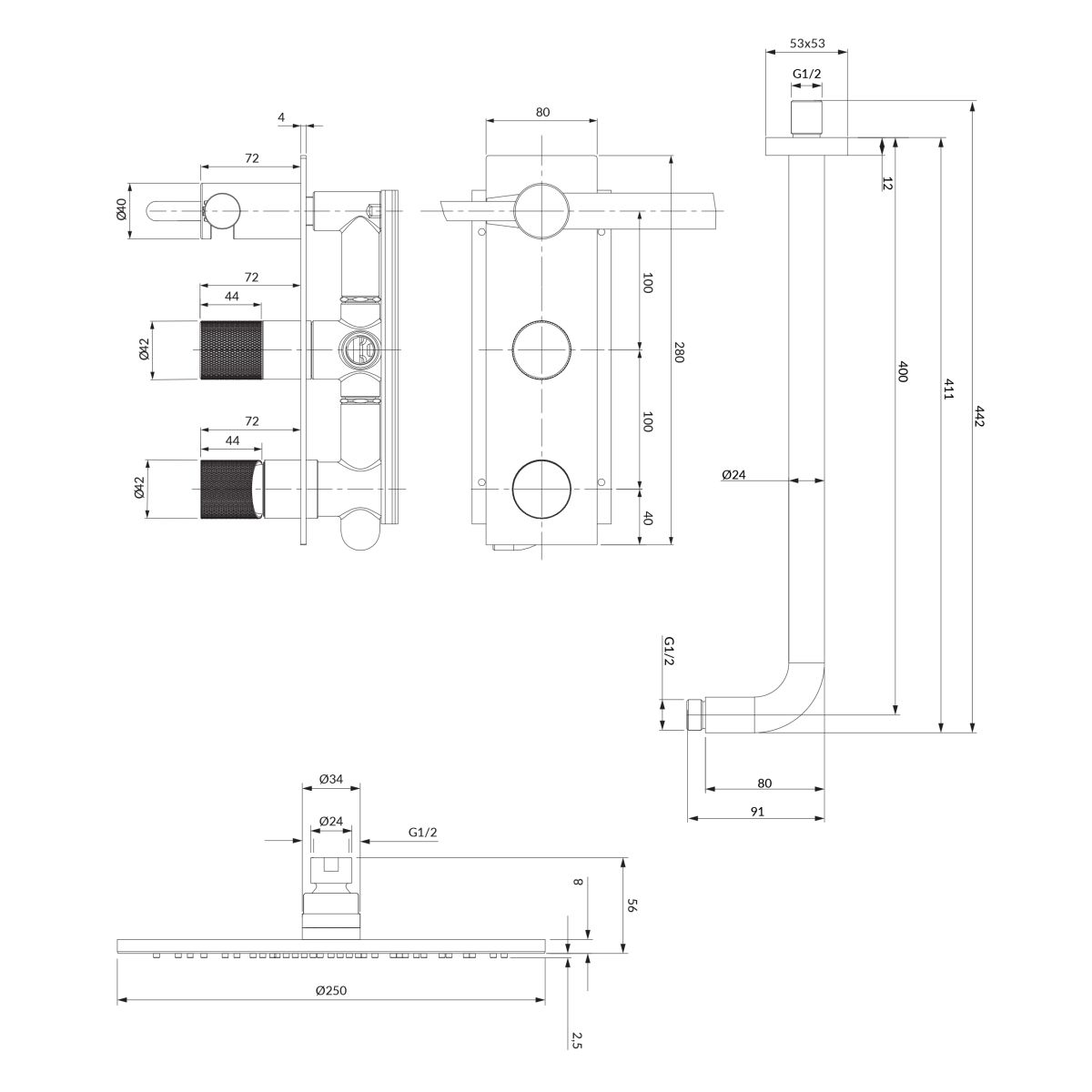 Omnires Contour conjunto de ducha empotrado con rociador con efecto lluvia || SYSCT10AT